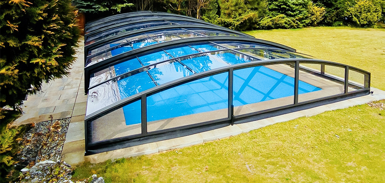 Ohne Laufschienen eröffnet diese Art von Poolüberdachung neue Möglichkeiten für Ihren Pool.